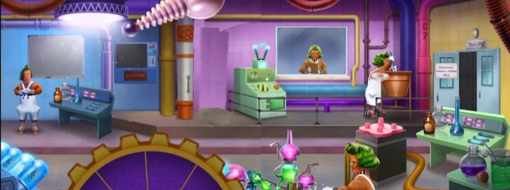 The Authorized oompa loompa room is a room that oompa loompas experiment on all candies, all oompa loompa make some candy with secret solution for The Inventing Room, all for use only oompa loompa. The Authorized oompa loompa room is the room where only an authorized Oompa can enter. This is the remodeled version of the 1971 Inventing Room.